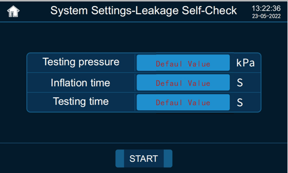 The Leakage Self-Check function automatically detects the leak of the instrument itself to ensure no internal leaks before or during testing. This prevents misjudgments or incorrect results due to issues with the instrument. Use this function when excluding the possibility of leaks in the instrument.